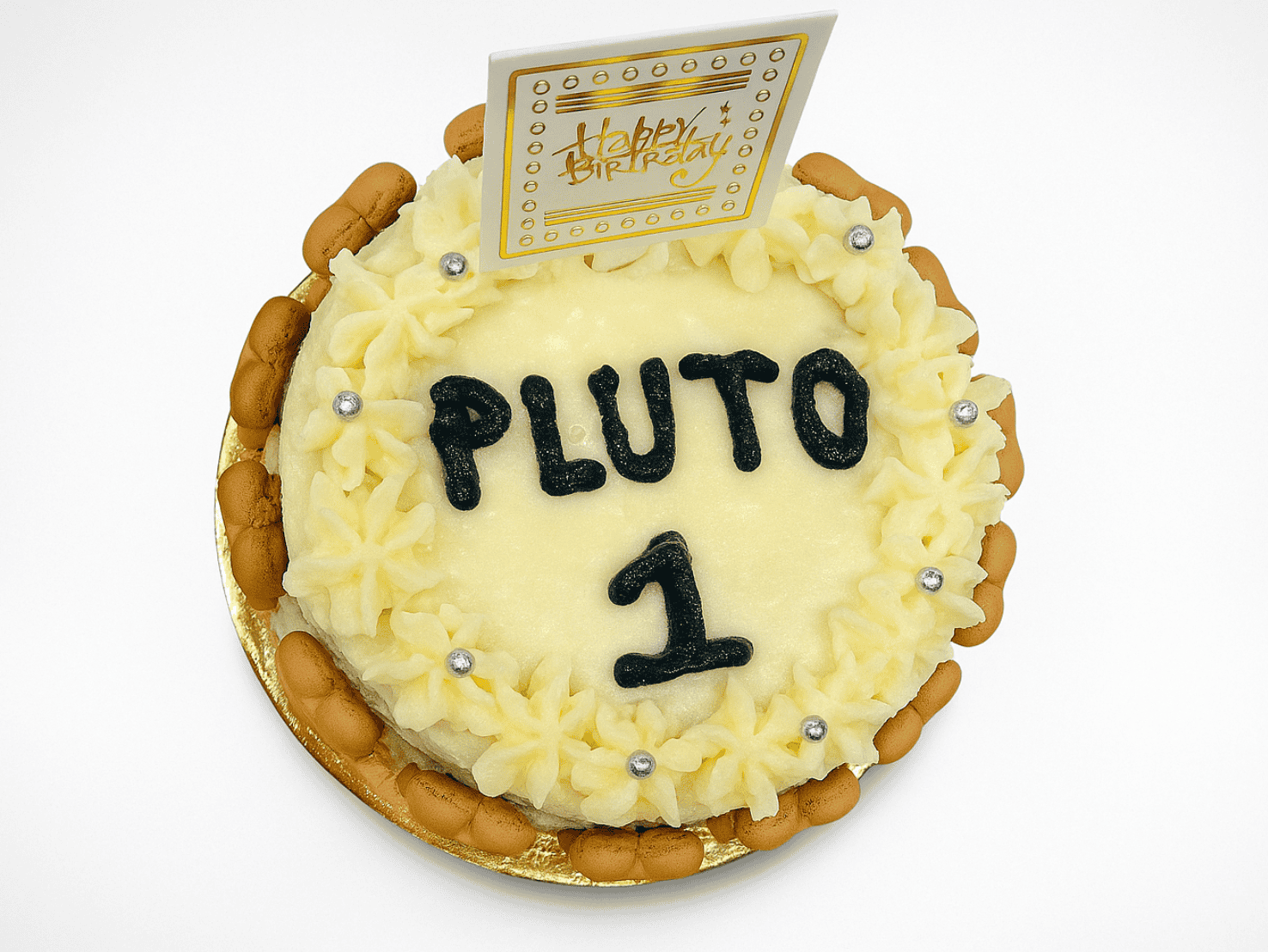 A treat your pet will definitely love. Get a Banana Peanut Butter Cake crafted for dogs, designed as a bone-shaped sign that can be personalized with your dog’s name, topped with blue frosting. It’s a special pet-safe treat for your furry friend’s birthday or any celebration.