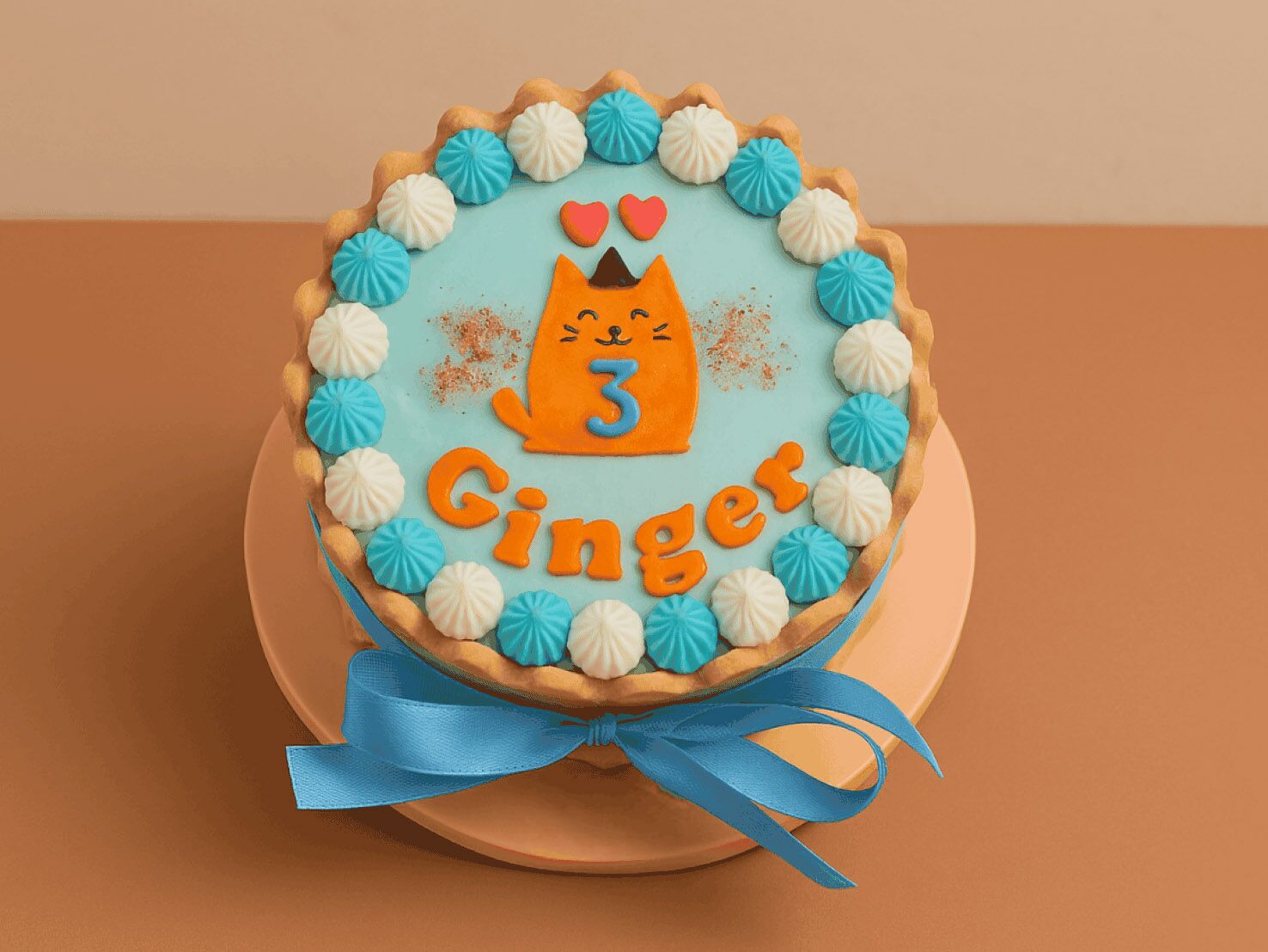 Celebrate your cat’s special day with this beautiful blue-and-orange cake! Decorated with cute kitty art and soft creamy swirls, it’s made using safe, pet-friendly ingredients.